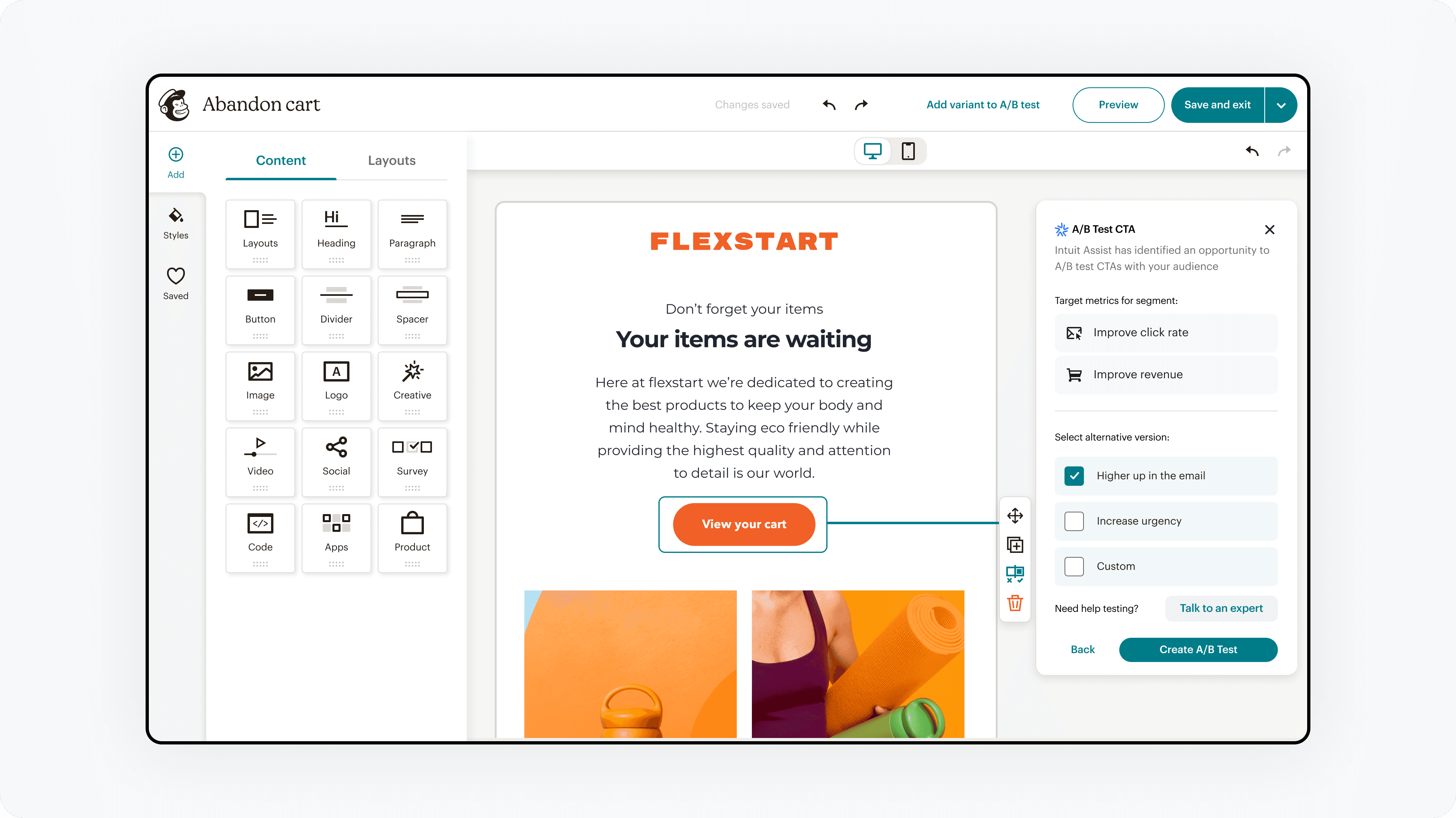 Shifting experiences from base email editing, to A/B testing