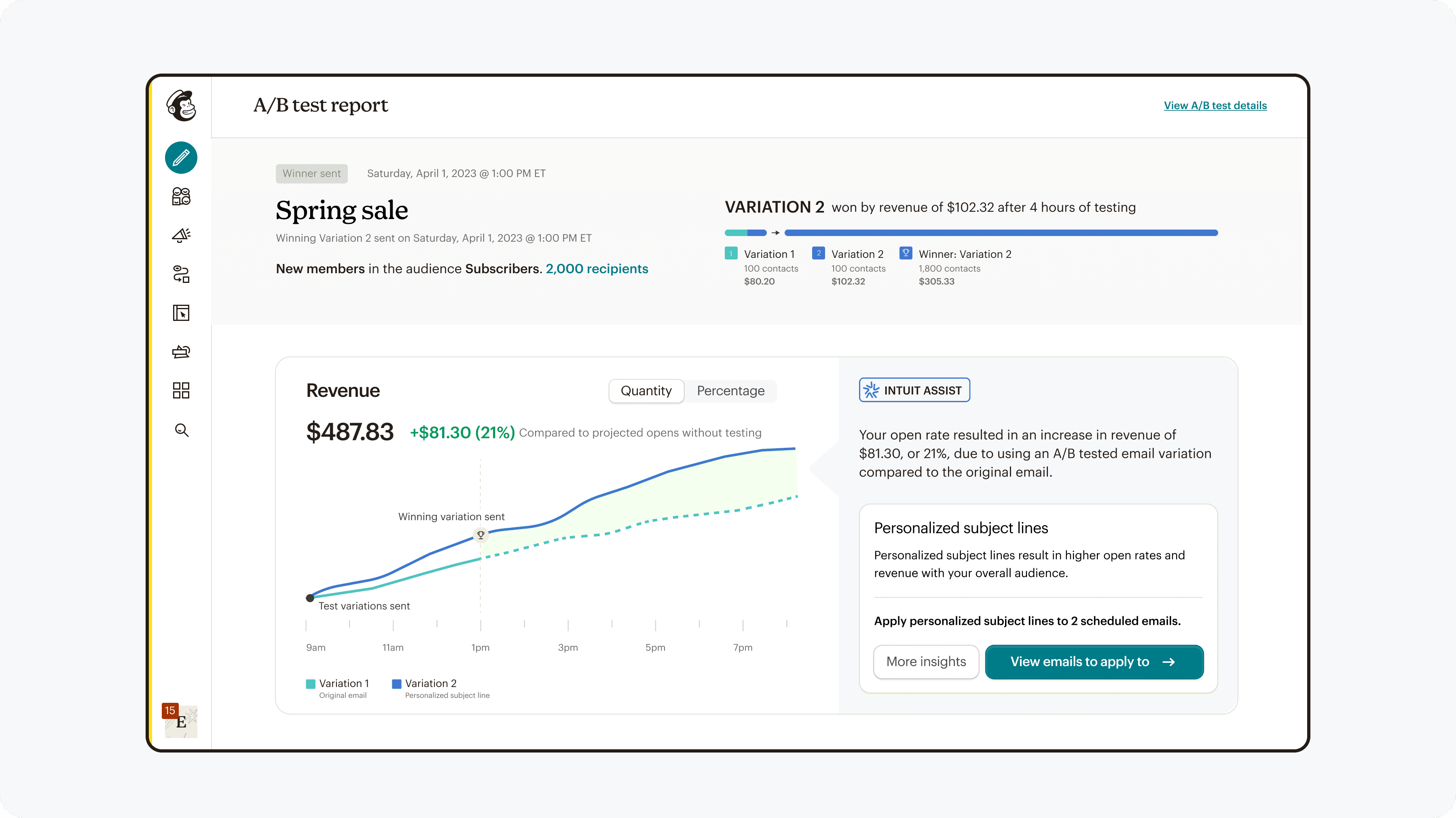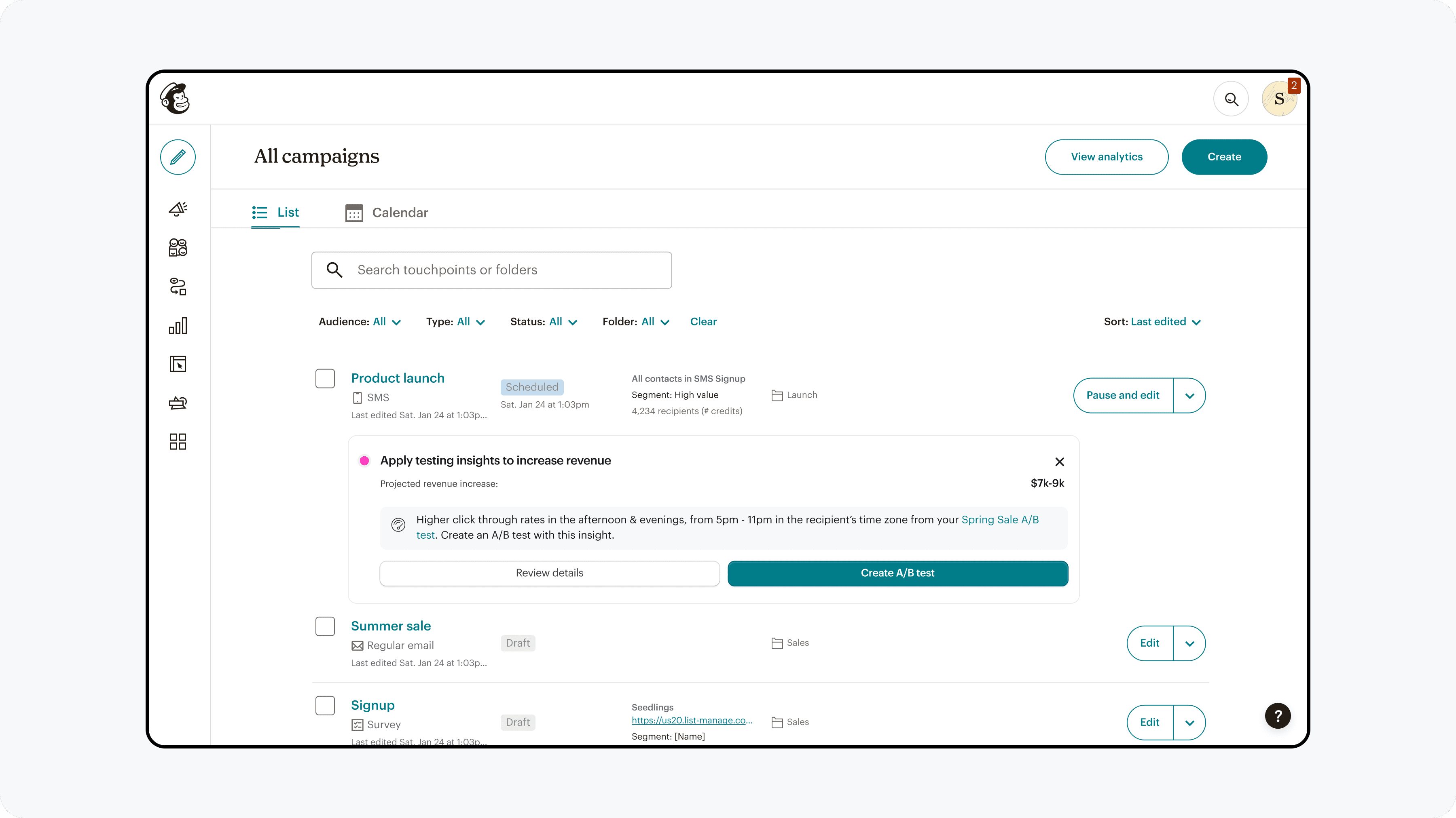 To balance risk while maximizing learning, we launched A/B testing in SMS first—a smaller, highly motivated user group—before expanding to email, Mailchimp’s highest-visibility and highest-impact channel.