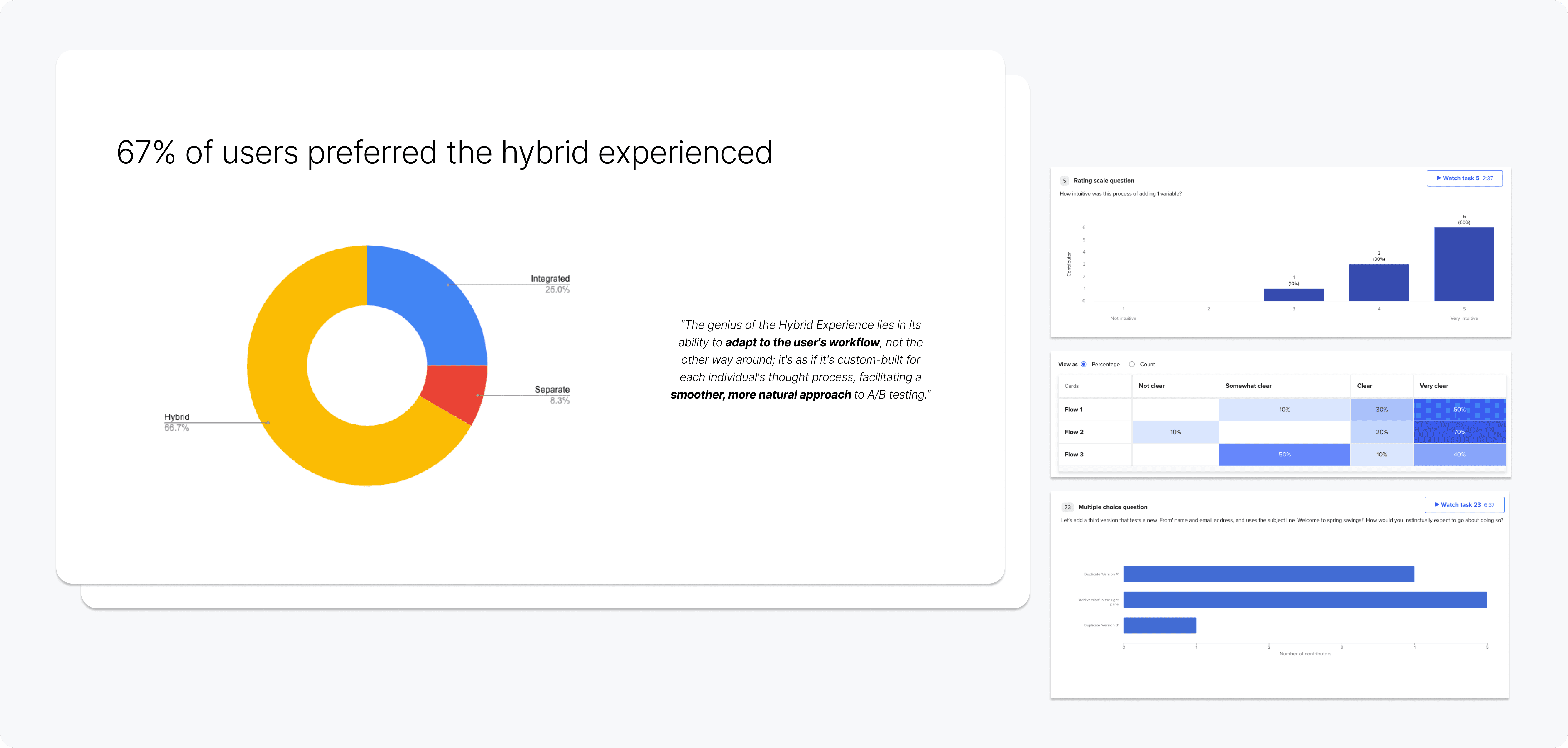 Afterwards, multiple unmoderated tests were conducted for quick validation. The results were synthesized and presented to the team to establish clear direction.