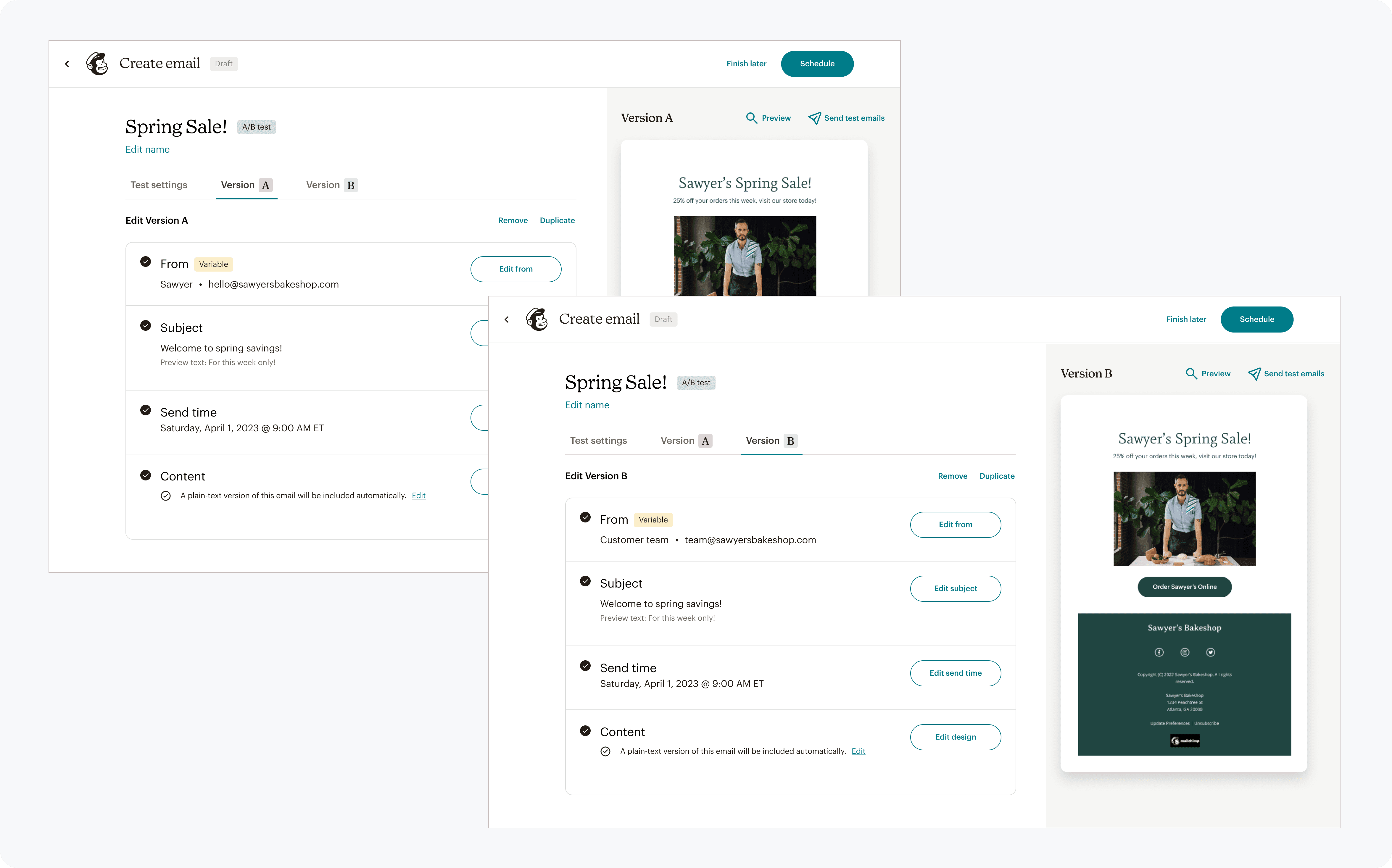 Each campaign version can be edited independently