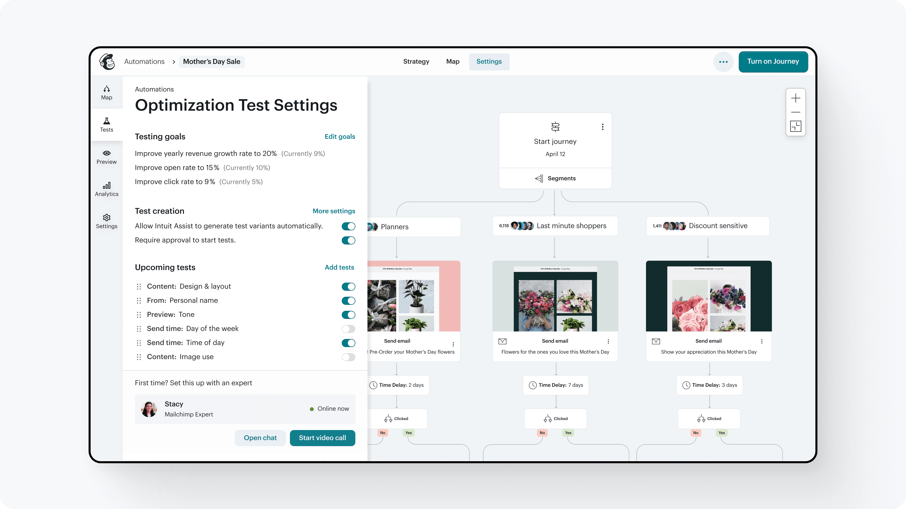"The biggest difference between Mailchimp and (competitor), and one of the main reasons we switched, was the ability to A/B test automations”